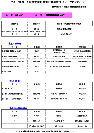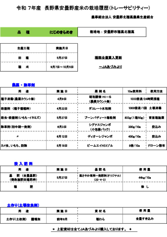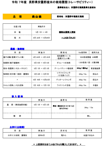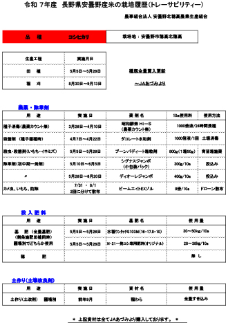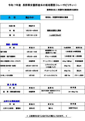 令和7年産米の栽培履歴(トレーサビリティー)